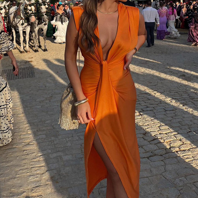 ✅Niewymagająca stylizacja: Dzięki przyciągającemu wzrok głębokiemu dekoltowi i wyrafinowanym marszczeniom sukienka ta wymaga minimalnej ilości dodatków. Odważne kolory i ponadczasowy design sprawiają, że sukienka natychmiast przyciąga wzrok, dzięki czemu wszędzie będziesz w centrum uwagi.
